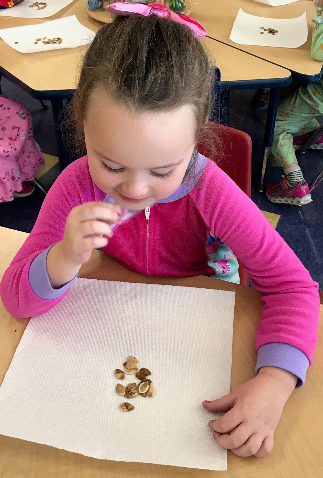We had so much fun learning here in Kindergarten this week! We did a color mixing experiment to make purple and learned how to spell the color word, learned 2 new letters, had a PJ day, enjoyed pumpkin seeds from our pumpkin, finished our school rules book, worked on literacy skills in Literacy Lab, shared with our reading buddies and continued to read more Mo Willems books.