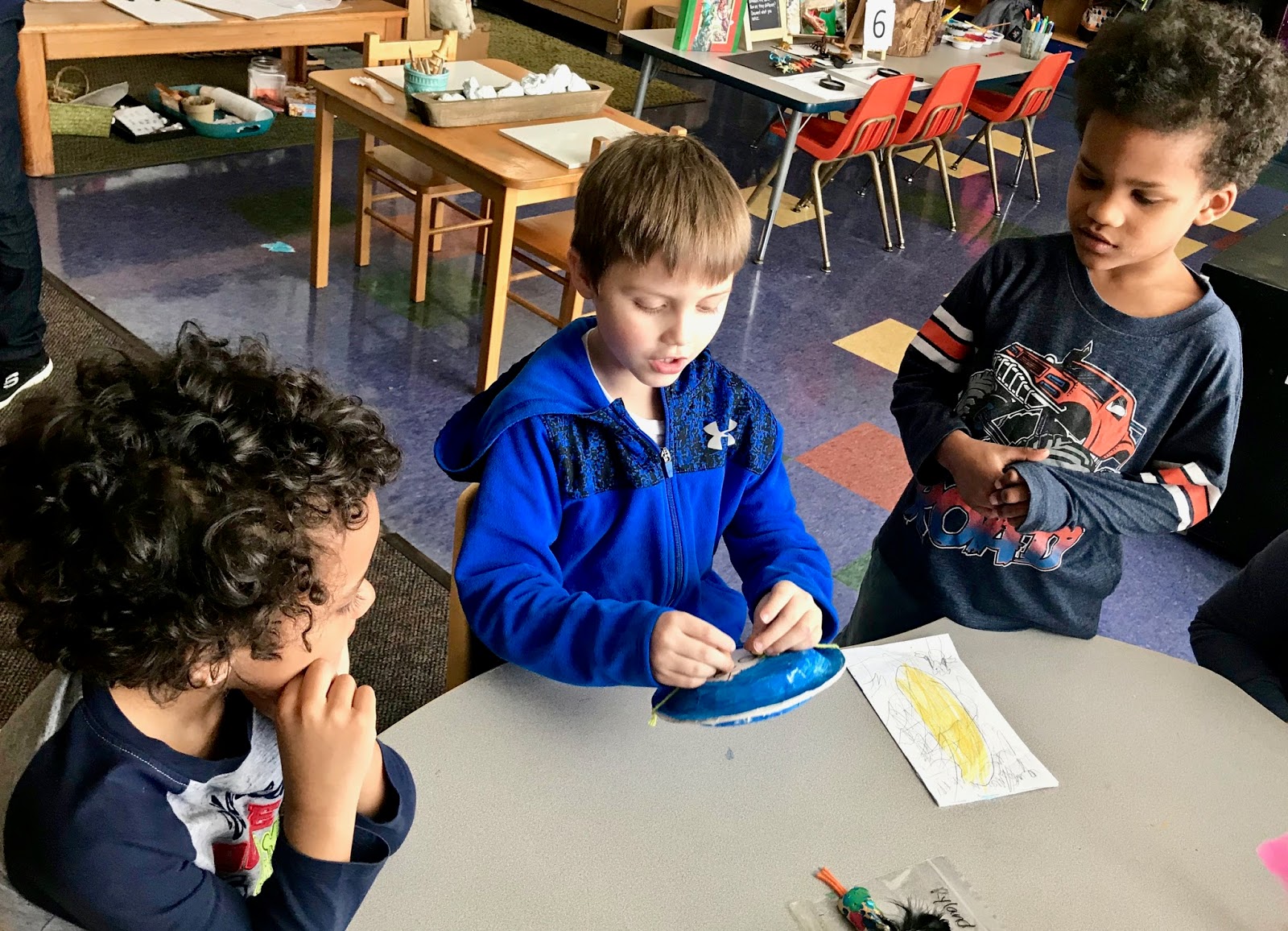 We got the student's portfolios ready for conferences. In order to get ready to share their work with their families at conferences, they shared their portfolios with their Preschool Reading Buddies!