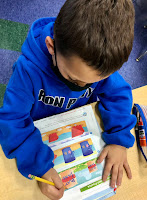 We worked on labeling this week during writing. We are working on labeling things using the beginning and ending sounds. For example, for the word jump the student would write "jp". If they hear more sounds than just the beginning and the end, they can try to write those as well. If your child asks you for help at home, don't just tell them how to spell a word! Instead help them sound it out and write the sounds they hear. This is called invented spelling and is an important step in learning how to write.
